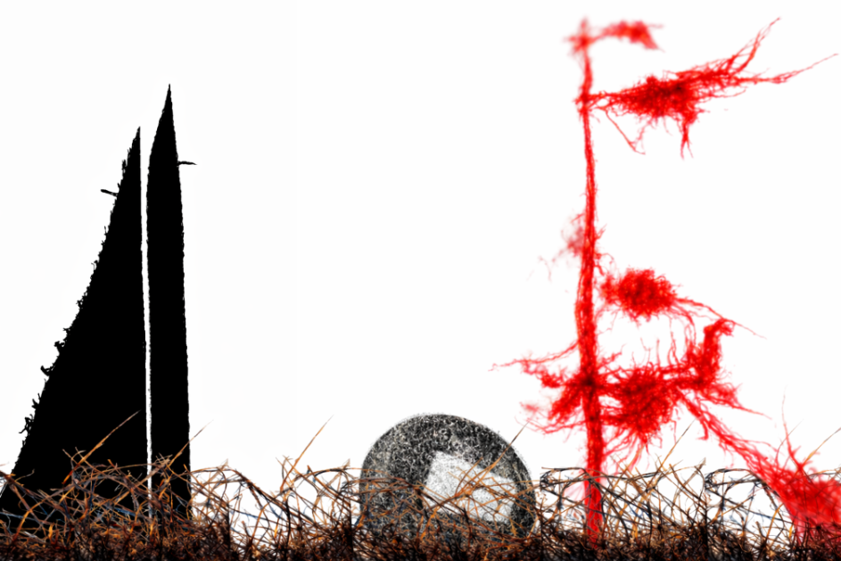 Vue au microscope, la scène ne raconte rien de ce qu’elle montre d’abord. Ce ne sont ni une tige qui pousse, ni des ciseaux ouverts, ni un œuf de Pâques abandonné dans l’herbe. Ce sont des fragments de carton de livraison. Du banal. Du jetable. Du quotidien.