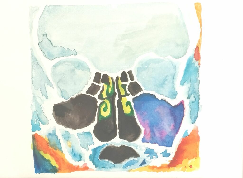 Les taches colorées évoquent des saignements de nez, non pas réalistes mais transposés, filtrés, esthétisés. Le sang n’est plus rouge, il devient signal, donnée, émotion chromatique. Il circule sans blessure visible, comme une fatigue interne, un trop-plein invisible. Le corps saigne sans choc, comme nos esprits saturent sans impact immédiat.