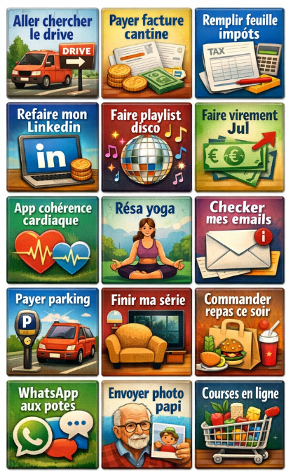 Le jeu de Memory avec 24 magnets, est faussé dès le départ. Les cartes ne sont pas retournées. Il n’y a rien à découvrir, rien à associer, rien à retenir. La mémoire est devenue inutile. L’exercice cognitif est remplacé par une exécution continue. Lire, faire, passer à la suivante. Une boucle sans apprentissage, sans appropriation. L’intelligence n’est plus sollicitée, seule la conformité l’est.